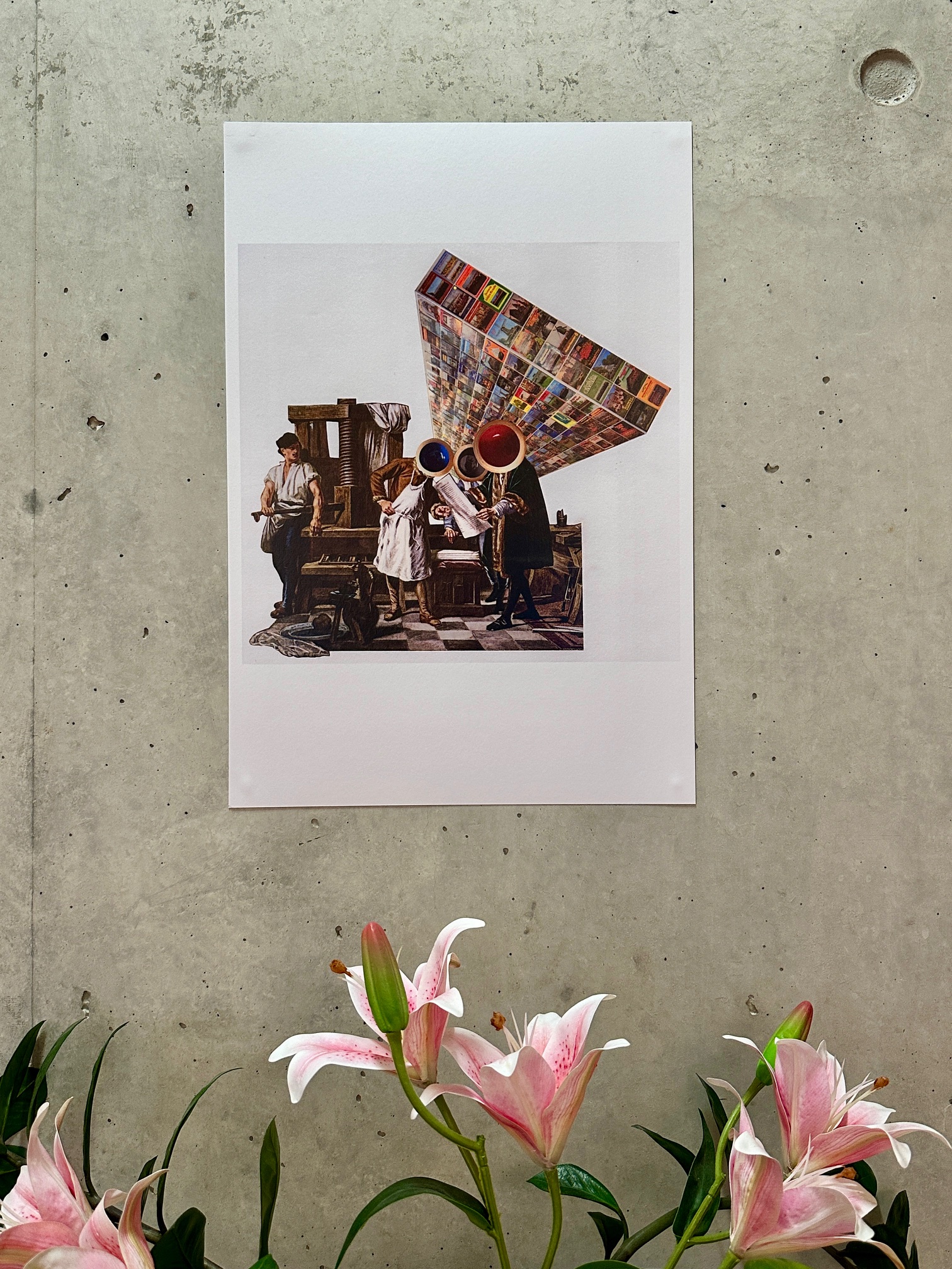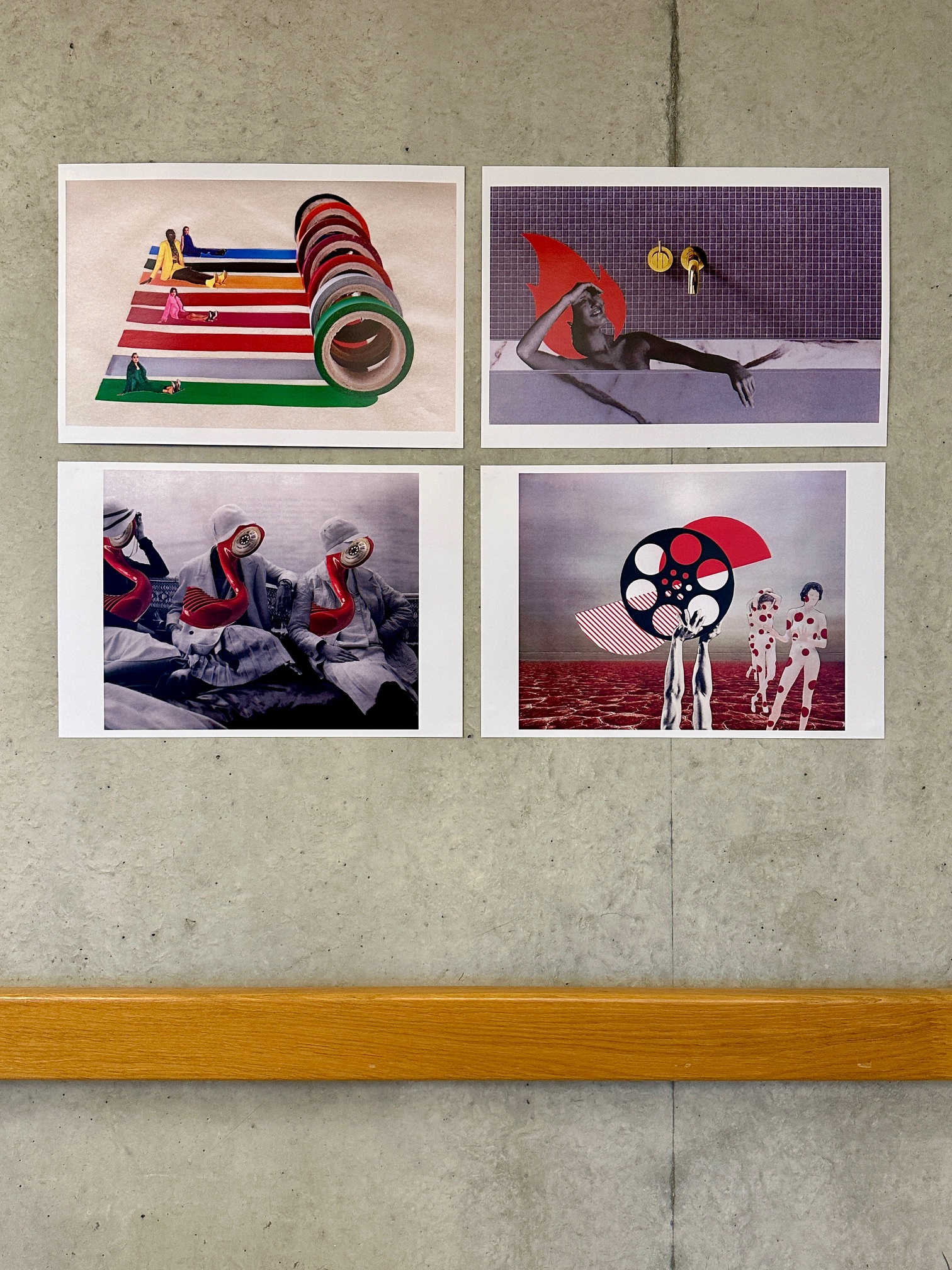 I was invited to exhibit some of my creations there. After a careful selection process, the residents can now appreciate my collages and discuss them together, sharing their feelings about them. I am happy this offers them the opportunity to change their daily routine a bit.